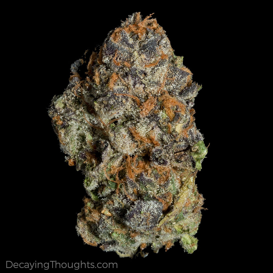Notes: 1.5gram sample: Has that kush or hashplant smell. Gorgeous bud with nice colors, very frosty. Dark purple, light greens, orange stigmas with orange hairs. The calyxes look nice and plump. Real nice flower with some skunk and sweet notes as well- a very well balanced tasting herb between skunk and earthy almost slight chocolate or coffee notes. Uplifting sensations yet calming. Smooth, dense smoke out of the bong. Beautiful.