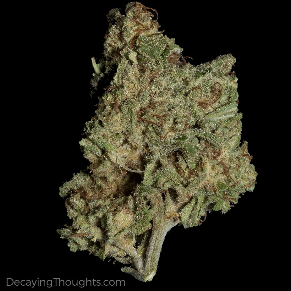 Notes: 1.2 Gram sample – Smells real clean, almost like a lavender or natural soap. Real tight trim job. Light green base loaded with trichomes make the bud look appear lighter. It has a sweet smell, dank, a little fruity smelling. Real mellow taste. I found this to be a calming strain that reminded me of a lake or water… Seems strong with onset early effects, that seemed to increase. I like it, good high. It took a while to take effect but it feel very strong, medicated nicely!